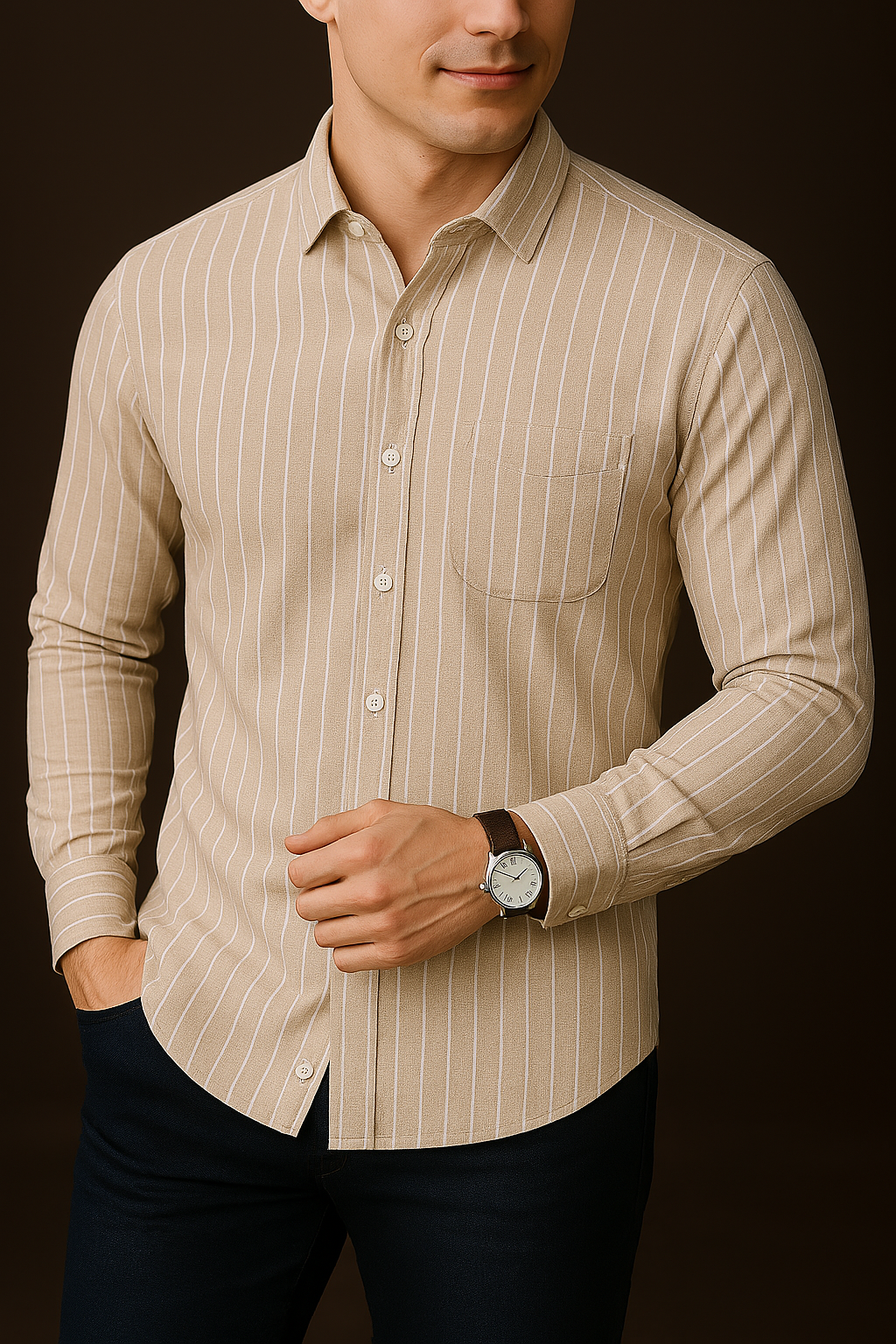Refine your wardrobe with the Regent Crest Tailored Stripe Shirt, crafted for the modern gentleman who values sophistication and superior craftsmanship. Made from premium cotton fabric, this shirt features a tailored fit, classic stripe design, and breathable comfort, making it a versatile essential for both formal and smart-casual styling.